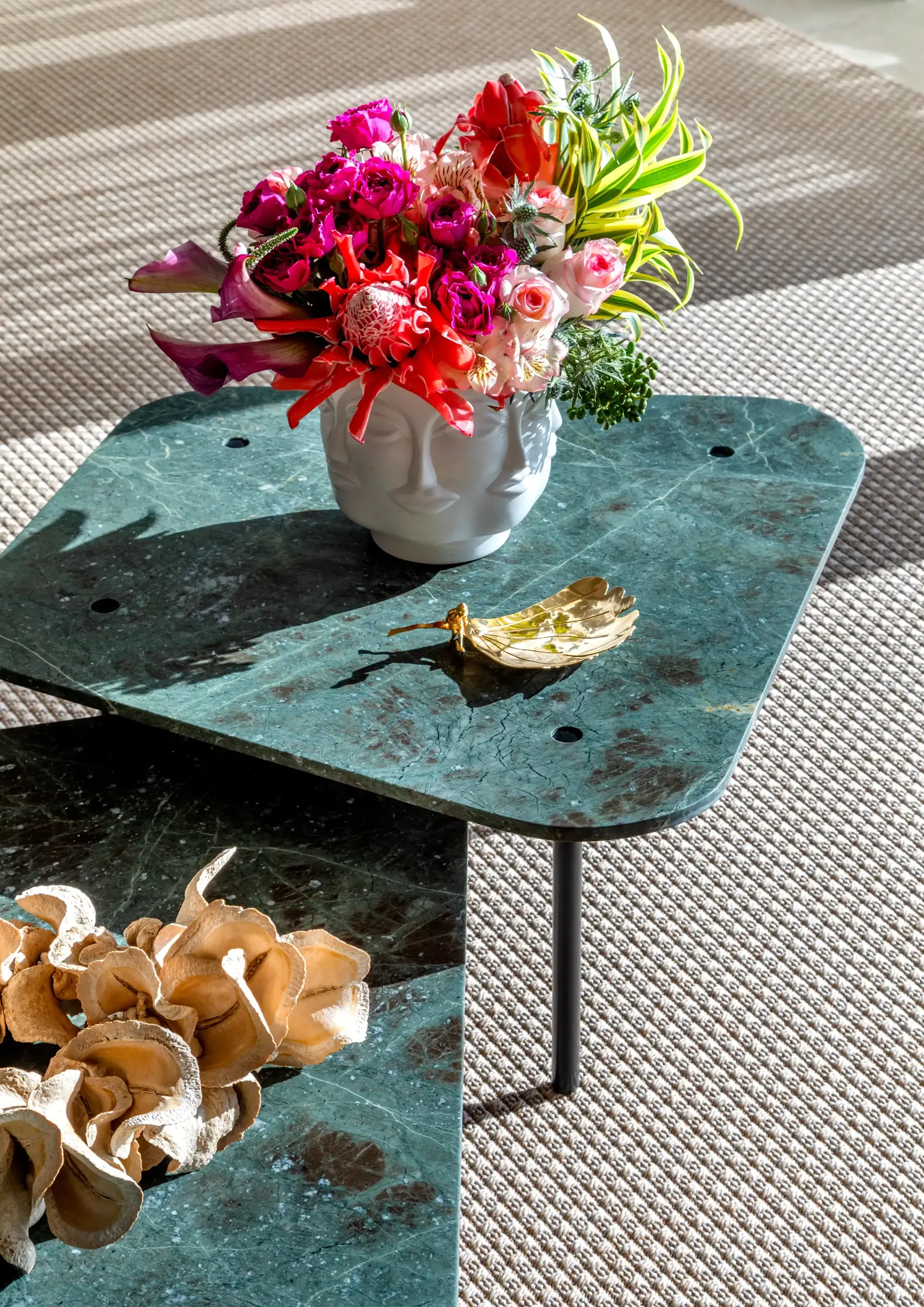 Apostamos em texturas naturais, peças autorais e uma paleta que valoriza a luz e o cotidiano. Os tons terrosos, o mobiliário de linhas orgânicas e os objetos garimpados compõem um ambiente que não busca perfeição, mas sim pertencimento. Aqui, cada escolha — da arte à cadeira — carrega o gesto de quem vive e de quem cria.